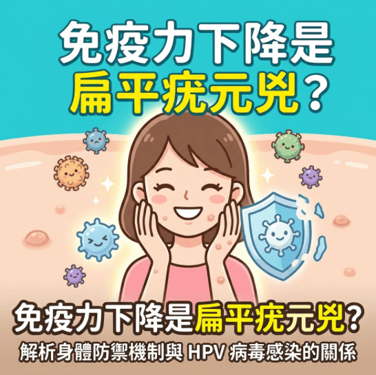 臉上或手背突然長出微小突起物?這可能是由低風險 HPV 病毒引起的「扁平疣」。它並不會致癌,真正的發病元兇其實是「免疫力下降」!本文深度解析壓力、熬夜如何瓦解身體防禦機制引發大爆發,並帶您了解如何透過中西醫結合治療,從根源提升免疫力,徹底告別惱人的扁平疣。